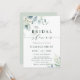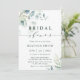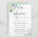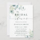 Diese Brautdusche lädt mit gemalten Aquarellfarben-Eukalyptus-Blätter, grünem Blattwerk und hellblauen Blätter mit stilvoller Kalligrafie ein. Klicken Sie auf den Link Weitere anpassen, um Schriftart, Größe und Farbe zu ändern, um eine erweiterte Anpassung dieses Designs zu erhalten.