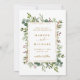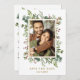 Dieses Foto Save the Date mit gemalten Aquarellen Eukalyptusfarben, grünen Blätter, roten Beeren, Kiefernästen und einem goldenen Rechteck aus Imitat mit individuellem Text auf der Rückseite. Für eine weiter gehende Anpassung dieses Designs klicken Sie bitte auf den Link "Weitere Anpassung". Matching-Elemente sind ebenfalls verfügbar.
