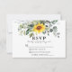 Die moderne Elegant Watercolor Botanical Greenery Wedding RSVP Card beinhaltet eine gelbe Sonnenblume auf Eukalyptus-Blätter, grünes botanisches Blattwerk, staubblaue Blätter und andere schöne botanische Pflanzen.