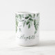 Botanische Vegetation Tasse oder Tee Tasse mit Efeu, Farn und Salbei Blätter. Ihr Name in einem stilvollen Skript.