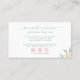 Elegante florale Visitenkarten mit Ihrem Namen und Geschäftsnamen oder Titel in einer schicken Kombination aus Blockschrift und handgeschriebenem Text, ergänzt durch ein Aquarellbouquet aus pastellfarbenen Blume und Grünpflanzen. Fügen Sie Ihre Kontaktdaten in Minzgrün auf der Rückseite mit einer kleinen Blumenstruktur in der unteren Ecke hinzu.