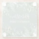 Familienname Cabin Wasserfarbe Botanischer Greenery Glass Untersetzer umfasst Efeu, Farn und Salbei Blätter. Sage Green Hintergrund.