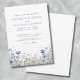 Dusty Blue Wildblume Einladung Hochzeit. Lassen Sie Ihre Hochzeit mit der ruhigen Schönheit der Natur in diesem durchdachten Design, das perfekt für Feiern vom Frühling bis zum Herbst geeignet ist, verzaubern. Am unteren Rand zeigt ein zarter Rahmen staubblaue Aquarellfarben und weiche Vegetation und schafft eine elegante und ruhige Ästhetik. Der Text wird in einer raffinierten Mischung aus blauen und dunkelgrauen Schriftart dargestellt, die handgeschriebene Schrift mit moderner Serifentypografie kombiniert, um einen polierten und zeitgenössischen Look zu erhalten. Dieses Design vereint den Charme einer blühenden Landschaft und bleibt gleichzeitig vielseitig genug für rustikale Hochzeiten im Freien oder schicke Stadtfeiern. Vollständig anpassbar, können Sie Text, Schriftart und Farben an Ihren individuellen Stil anpassen. Diese Einladung ist als gedruckte Einladung oder als digitale Datei zum Download erhältlich und verbindet zeitlose Eleganz mit natürlicher Schönheit und schafft so den perfekten Ton für Ihren besonderen Tag.