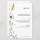 Diese skurrilen Hochzeitsmenüs sind mit illustrierten, farbenfrohen gelben, orangefarbenen und weißen Wildblumen sowie grünen Blätter auf weißem Hintergrund gestaltet. Ein einfaches Design, das sowohl boho als auch elegant ist.