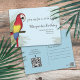 Dieses Design umfasst ein niedliches Wildvögeltier-Party, ein tropisches Party im Freien, einen bunten Dschungelpapagei niedlich, ein schlichtes minimalistisches modernes , eine stilvolle Kalligraphie, ein botanisches Blätter aus Palmen, tropisches grünes Blattwerk, eine schwindelerregende niedliche Party Einladung, eine lustige Sommergeburtstagparty, eine botanische Dschungpartei adise Insel eine preisgünstige Postkarte