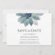 Botanisches Grün Hochzeit Sichern Sie die Date-Ankündigungskarte mit einem eleganten, sukkulenten Design. Mit individualisierbaren Buchstaben können Sie Ihre Namen und Hochzeitsinformationen hinzufügen. Ideal, um einen besonderen Tag mit einem Wüstenthema zu planen.