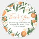 Botanische Zitrusfrüchte Orangen kleine Süsse Babydusche danke Ihnen Aufkleber mit hübschen Orangen, Clementinen Zitrusfrüchte Illustration, grüne Äste und Blätter mit weißen Blume und ein modernes Script Bürste Schriftart auf Weiß . Perfekte geschlechtsneutrale Babydusche für Winter, Frühling und Sommersaison Zitrusfrüchte! Mit einem hübschen Zitrusklementin-botanischen Muster an der Rückseite.