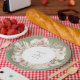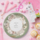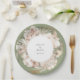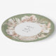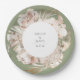 Beige Aquarell botanischer Blumengarten Hochzeit Papier Teller mit olivgrünem Hintergrund.