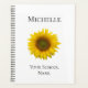 Personalisierter Sonnenblumenblütenplaner mit weißem Hintergrund. Mit gelben Farben und schwarzen Buchstaben können Sie sich mit Ihren eigenen Informationen personalisieren. Dieses Blumenmotiv ist ideal, um alle Schulaktivitäten behalten.