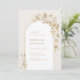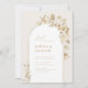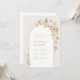 Diese eleganten, modernen Einladungen sind mit goldenen botanischen Blumenbildern aus dem Imitat gestaltet und bilden einen Rahmen für eine zarte Goldlinie in Bogenform. Ihre Party-Informationen werden in romantischen Skripten und raffinierten Serif-Schriftart angezeigt. Große blumengeschmückte Hochzeitsfeiern für romantische Gartenhochzeiten und moderne, luxuriöse Hochzeiten. Sehen Sie sich alle passenden Stücke in der Sammlung an.