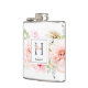Elegante Aquarellfarben Rosa, bordeauxfarbene und weiße Blume und zartes Gartengrün mit dem verzierten Buchstaben "H" in Schiefergrau, Monogramm-Kolben. Flask enthält eine Textzeile für Single-Vorlagen, die mit Namen personalisiert werden soll.