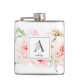 Elegante Aquarellfarben Rosa, bordeauxrote und weiße Blume und zartes Gartengrün mit dem verzierten Buchstaben "A" in Schiefergrau, Monogramm-Kolben. Flask enthält eine Textzeile für Single-Vorlagen, die mit Namen personalisiert werden soll.