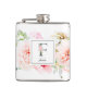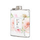 Elegante Aquarellfarben Rosa, bordeauxrote und weiße Blume und zartes Gartengrün mit dem verzierten Buchstaben "F" in Schiefergrau, Monogramm-Kolben. Flask enthält eine Textzeile für Single-Vorlagen, die mit Namen personalisiert werden soll.