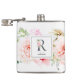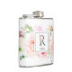 Elegante Aquarellfarben Rosa, bordeauxfarbene und weiße Blume und zartes Gartengrün mit dem verzierten Buchstaben "R" in Schiefergrau, Monogramm-Kolben. Flask enthält eine Textzeile für Single-Vorlagen, die mit Namen personalisiert werden soll.