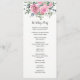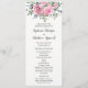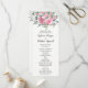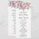 Diese eleganten Hochzeitsfeierlichkeiten bieten Aquarellblumen, rosa Rosen und Eukalyptusblättern. Die Vorderseite der Karte hat die Zeremonie, und auf der Rückseite der Karte wird das Brautparty angezeigt. Auch passende Produkte sind erhältlich.