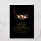 Schwarze Terrakotta florale botanische elegante Junggebirge Frohe Weihnachtskarte. Goldtypografie in Echtfolie, Silber und Rose.