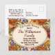 Mit dieser eleganten botanischen floralen Postkarte laden Sie Ihre Familie auf Ihre Wiedersehen ein. Dieses Design zeigt ein atemberaubendes, kompliziertes Muster der Fallflora, einschließlich detaillierter Chrysanthemen, Aster und getrockneter Gräser. Die schöne Abbildung zeigt den Kern der Herbstsaison und ist somit perfekt für eine anspruchsvolle und stilvolle Ansammlung. Diese Postkarte ist vollständig mit Ihren Wiedersehen-Daten der Familie anpassbar.