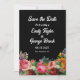 Diese elegante Blumenhochzeit erspart die Einladung zum Datum und ist ideal für eine moderne Blumenhochzeit im Sommer. Das romantische Design besticht durch einen wunderschönen botanischen Garten in Aquarelltönen mit einem blühenden Rahmen mit eleganter weißer Typografie auf schwarzem Hintergrund.