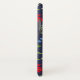 Eleganter iPhone-Gehäuse mit botanischer Herbstdarstellung. Heller Ahorn, heilig, mistletoe und juniper Muster auf dunkelblauem Hintergrund.