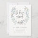 Diese einfache und stilvolle, bewegende Ankündigung besticht durch einen süßen Aquarellkranz mit moderner Typografie und einem weichen, grauen Schatten.