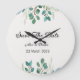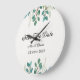 Elegant Save the Date Hochzeit große Wanduhr mit schönen grünen Blätter.