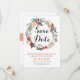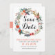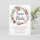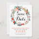 Diese Einladung ist stilvoll und modern mit einem farbenfrohen, blumengeschmückten Kranz, der die Worte Save the Date umgibt. Personalisieren Sie mit Ihren Namen, Hochzeitstermin und anderen Informationen wie das Ziel oder eine Hochzeitswebsite. Der Rücken hat ein koordinierendes Spray von Blume, um auf die Vorderseite zu passen.