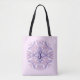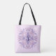 Personalisierte Boho Tote Tasche mit Monogramm und botanische Linie Kunst Blumenmandala Design mit cottagecore ästhetische in Pastellfarben lila und rosa.