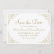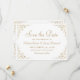 Diese elegante Vintag-inspirierte feierliche Hochzeit speichert die Dattelkarte in goldfarbenem Drehbuch und Serif-Schriftart, gerahmt durch ein zartes Vintages Goldmotiv.