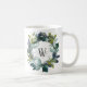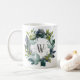 Diese elegante mattierte Tasse verfügt über einen botanischen Kranz in Aquarelltönen in den Farbtönen aquamarin, schlaugrün und grün. In der Mitte ist eine mit Monogramm erste Akzent von einem blüh für Sie zu personalisieren. Ein einzigartiges personalisiertes Geschenk.