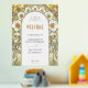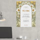 Dieses elegante Begrüßungszeichen besticht durch ein atemberaubendes botanisches Design mit magnolischen Blüten und aufwändigen Blumendetails in sanften Grün- und Goldtönen. Gerahmt von einem verzierten Bogen, präsentiert das Kunstwerk zarte Goldakzente und bietet eine Vintage, aber moderne Ästhetik. Der cremefarbene Hintergrund verleiht dem Schild ein gepflegtes, gepflegtes Ambiente und verleiht ihm eine angenehme Atmosphäre. Dieses Schild eignet sich ideal für einen Garten, eine böhmische oder rustikale Hochzeit und empfängt die Gäste mit einer raffinierten, von der Natur inspirierten Touch. Die Mischung aus zarten Blumen und goldenen Details schafft ein zeitloses Stück, das eine Vielzahl von Hochzeitsthemen und Veranstaltungsorten ergänzt.