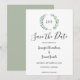 Elegante botanische Hochzeitseinladung in Aquarellen für Frühling, Sommer, Herbst oder Winterhochzeit. Grüner Olivenzweig Aquarell auf weißer Karte. Sie können das Monogramm, den Text und die Namen ändern. Wenn Sie Hilfe benötigen, können Sie mich unter pixelshoot3@gmail.com kontaktieren.