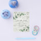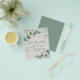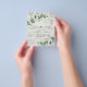 Eukalyptus Grünpflanzen Blätter moderne minimale Garten Party Wedding speichern das Datum Einladungen. Einfaches, zeitgenössisches botanisches Design. Salingrün und Weiß Holzfußboden.