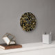 Botanisches Blumenmuster-Blätter in Gold Schwarz Runde Wanduhr
