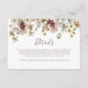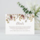 Unsere Botanische Bordeaux Watercolor Wedding Details Enclosure Card bietet eine wunderschöne und raffinierte Möglichkeit, alle wesentlichen Details Ihrer Hochzeit zu vermitteln. Oben mit weichen Aquarellfloralen verbindet er eine moderne Kalligraphie mit geschmackvollen Schriftzeichen auf einem knusprigen weißen Hintergrund. Diese Karte ist mit Ihren Hochzeitsinformationen vollständig anpassbar und stellt sicher, dass Ihre Gäste alles haben, was sie für Ihren großen Tag brauchen. Ein kühnes Bordeaux-Rechteck am unteren Rand sorgt für eine Touch an Eleganz und Farbenvielfalt. Diese Karte verbindet Eleganz mit Funktionalität und ist die perfekte Ergänzung zu jeder romantischen oder blumengeschmückten Hochzeit.