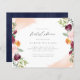 Diese Blumendusche lädt zu jeder Jahreszeit zum Wohlfühlen ein! Die Blume in den Farben Rosa und Bordeaux mit botanischer Vegetation an den Ecken, die auf einem hübschen Waschbecken in Aquarelltönen stehen. "Brautparty" wird in einem modernen Script-Kalligraphie-Schriftart und Ihre Details in minimalistischer Typografie gezeigt. Auf der Rückseite ist ein marineblauer Aquarell. Im Rahmen der Auswahl des Haushalts hier auf Zazzle kommen diese Einladungen in begrenzter Größe und in Papiervorräten. Wenn Sie eine andere Größe oder einen anderen Papiervorrat benötigen, kann dieses Design mit dem Design Transfer Tool für weitere Optionen in ein Standardformat übertragen werden.
