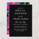 Diese moderne und elegante Dusche aus schwarzem Flor und botanischem Brautbad bietet farbenfrohe Blume in Rosa, lila und pfirsichfarben. Die Blätter sind in hellen Grüntönen mit schwarz-weißen Streifen gehalten.
