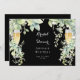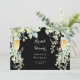 Einladung zur Brautdusche. Eleganter schwarzer Hintergrund. Tropfende botanische Champagner-Dusche.