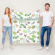 Diese schöne botanische, personalisierte Fleecedecke in Aquarellfarbe würde ein wunderbares Hochzeitsgeschenk für ein frisch verheiratetes Paar machen. Das Design ist ein Aquarellfoliendesign mit einem Salbei-Grün-Banner, auf dem die Namen der Paare angezeigt werden. Das Design hat goldenes, grünes und graues Blattwerk mit gestreuten Wildblumen in Rosa und lila.