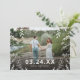 Erschwingliche, individuell bedruckte Save the Date Fotokarten mit einfachen Vorlagen zur Anpassung. Dieses stilvolle Design besticht durch ein einfaches Foto-Overlay-Design mit einem Rahmen aus botanischen Zweigen, Blätter und Zweigen. Personalisieren Sie es mit Ihrem Foto, dem Hochzeitstag und den Namen der Braut und des Bräutigams. Die Rückseite bietet Platz für zusätzliche Fotos und Hochzeitsdetails. Verwenden Sie die Designtools, um die Schriftartes und Farben zu bearbeiten, fügen Sie mehr Fotos und erstellen Sie eine einzigartige Hochzeit speichern Sie das Datum Ankündigung.