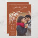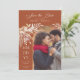Elegant Save the Date mit maßgeschneidertem gewölbtem Foto, in einem Duett aus Terrakotta und Creme, um Ihr Hochzeitsmotiv zu ergänzen. Das Aquarell-Design mit einem trendigen Bogen, mit Blätter und Blattwerk in Rost-Zimt-Creme in Gelb und Gold dekoriert. Elegantes, grünes Design mit Kalligraphie und modernem Stil in einer reichen, warmen und rustikalen erdigen Farbpalette. Bitte stöbern Sie in meinem Shop - Foliage Duet Kollektion - für passende Artikel.