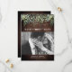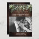Botanische grüne Saitenleuchten, die oben auf dem Holzboden entworfen wurden. Personalisieren Sie mit Ihrem eigenen Save the Date Foto.