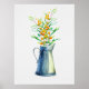 Wasserfarbene botanische Illustration von gelben Blumen in einem blauen Krug (rechts) Ich habe auch in meinem Laden die gleiche Abbildung, aber der Krug steht vor dem links.