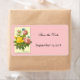 Eigene Save the Date Labels mit Schrift- und Blockbriefen und Vintager Kunst eines Bouquets aus rosa und gelben Rosen. Klicken Sie auf Anpassen, um Schriftart, Hintergrundfarben und vieles mehr zu ändern, und rettete Sie Ihr Design sogar für später.
