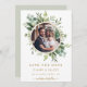 Dieses Hochzeitsfest-Foto Save the Date mit gemalten Aquarellen Eukalyptusgrün, grünen Blätter und einem vergoldeten Rahmen. Für eine weiter gehende Anpassung dieses Designs klicken Sie bitte auf den Link "Weitere Anpassung". Matching-Elemente sind ebenfalls verfügbar.