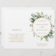 Dieses Zeremoniell-Programm beinhaltet die bemalten Aquarellfarben Eukalyptusgrün, grüne Blätter und einen goldenen Rundrahmen. Für eine weiter gehende Anpassung dieses Designs klicken Sie bitte auf den Link "Weitere Anpassung". Matching-Elemente sind ebenfalls verfügbar. HINWEIS: Sie müssen sie bei ihrer Ankunft halbieren.