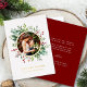 Dieses Foto Dankeschön-Karte mit gemalten Aquarelleukalyptusfarben, grünen Blätter, roten Beeren, Kiefernästen und einem vergoldeten Rahmen aus Folienkreis mit optionalem Text auf der Rückseite. Klicken Sie auf die SCHALTFLÄCHE BLAUE DESIGN TOOL, um eine erweiterte Anpassung dieses Designs zu erhalten.