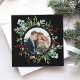 Dieses Weihnachtsfest | Die Urlaubskarte verfügt über ein Foto, das von gemalten Aquarelleukalyptusfarben, grünen Blätter, roten Beeren und Kiefernästen auf schwarzem Hintergrund umgeben ist. Für eine erweiterte Anpassung dieses Designs klicken Sie bitte auf den Link "Weitere Anpassung". Matching-Elemente sind ebenfalls verfügbar.