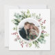 Dieses Weihnachtsfest | Holiday Save the Date Flachkarte mit gemalten Aquarelleukalyptus, grünen Blätter, roten Beeren, Kiefernästen mit kreisförmigem Foto und benutzerdefiniertem Text auf der Rückseite. Für eine erweiterte Anpassung dieses Designs klicken Sie bitte auf den Link "Weitere Anpassung". Matching-Elemente sind ebenfalls verfügbar.