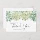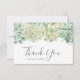 Botanische flache Hochzeit Dankeschön-Karte mit Aquarell-Sukkulenten in Grün mit "Danke" in einem eleganten Skript zusammen mit Ihren Namen. Die Rückseite hat Ihre personalisierte Nachricht. Dieses einfache Design ist ideal für eine Hochzeit im Frühjahr oder Sommer. Diese Dankeschön-Karten mit Ihrer persönlichen Nachricht machen das Versenden Ihrer Dankeschön-Karten schnell und einfach.