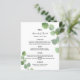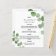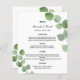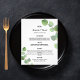 Personalisieren und fügen Sie Ihre Namen, Datum und das Hochzeitsmenü. Weißer Hintergrund, mit Eukalyptusgrün dekoriert, mit Sprigs.